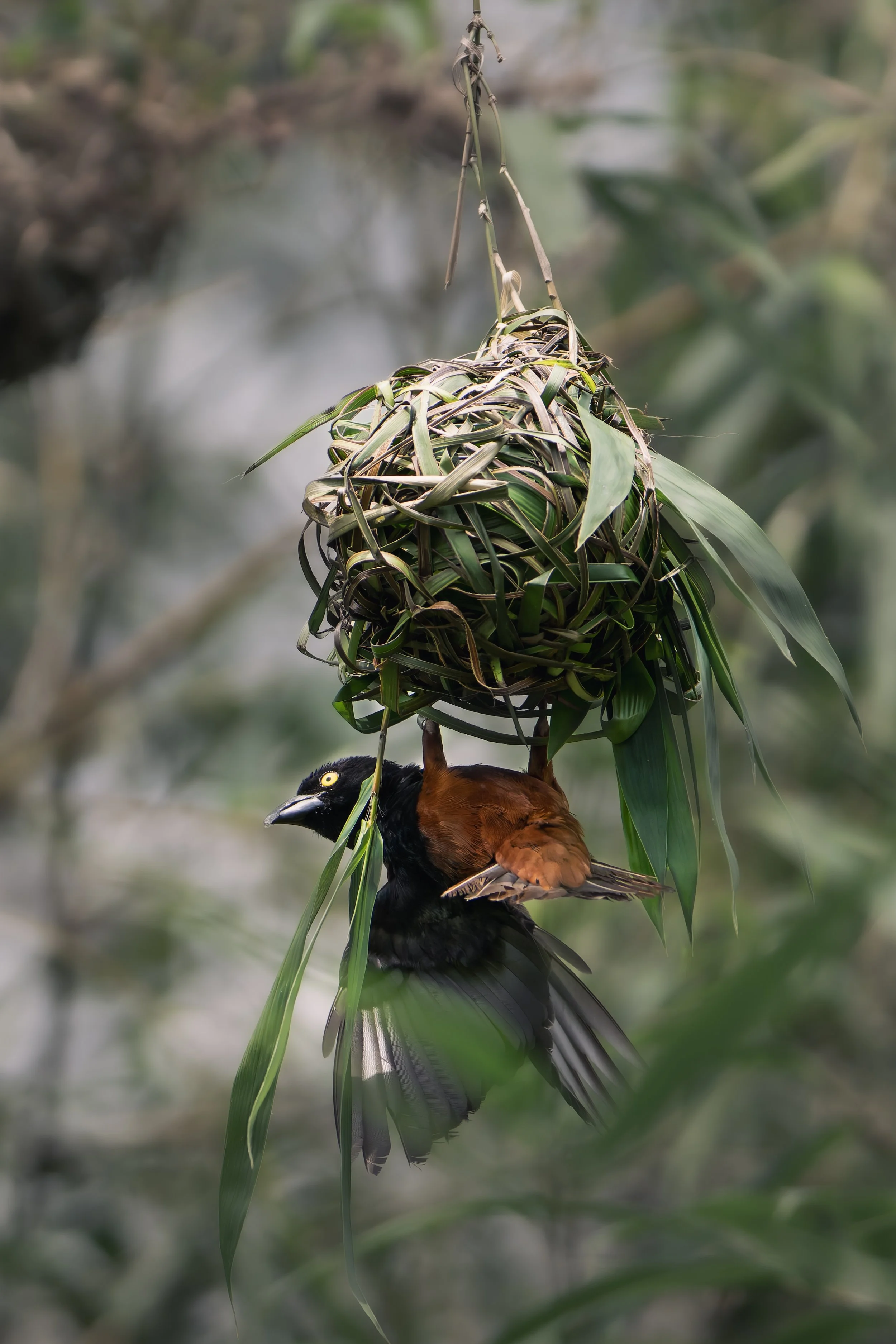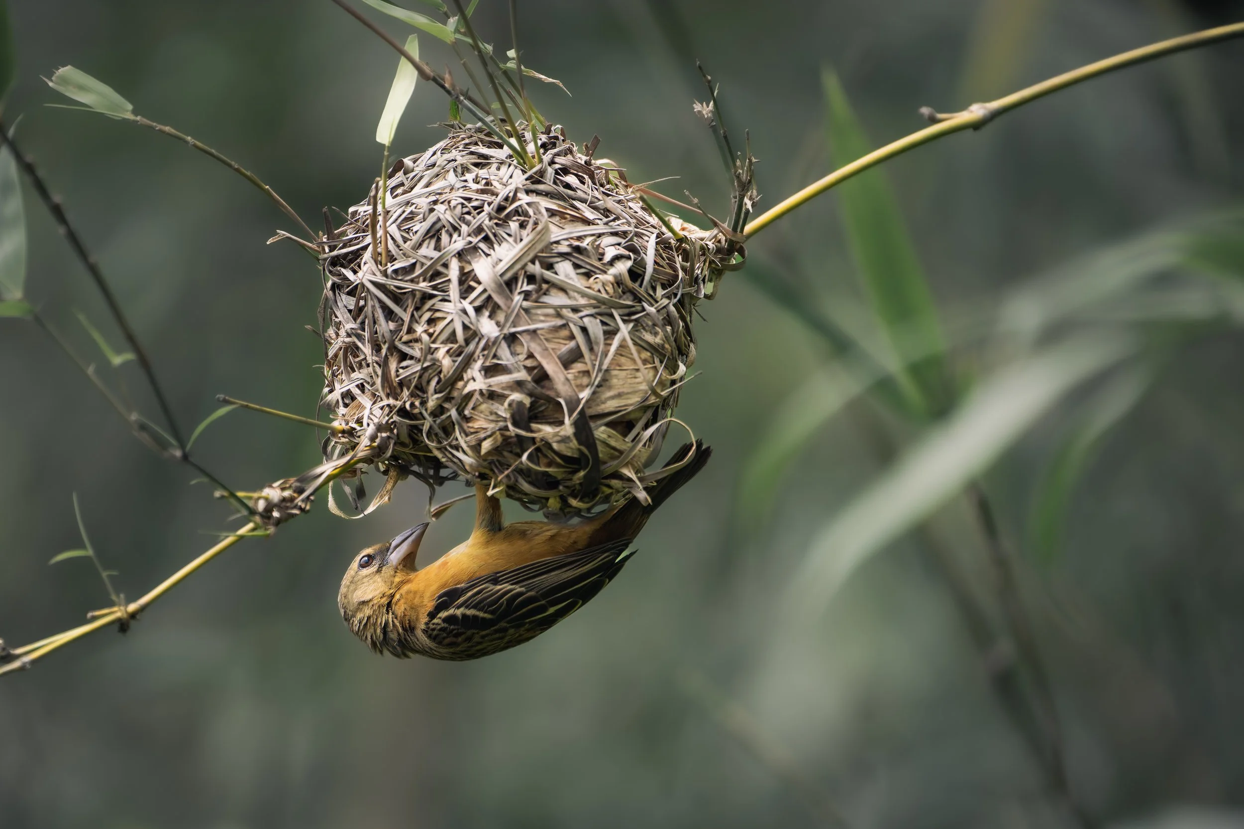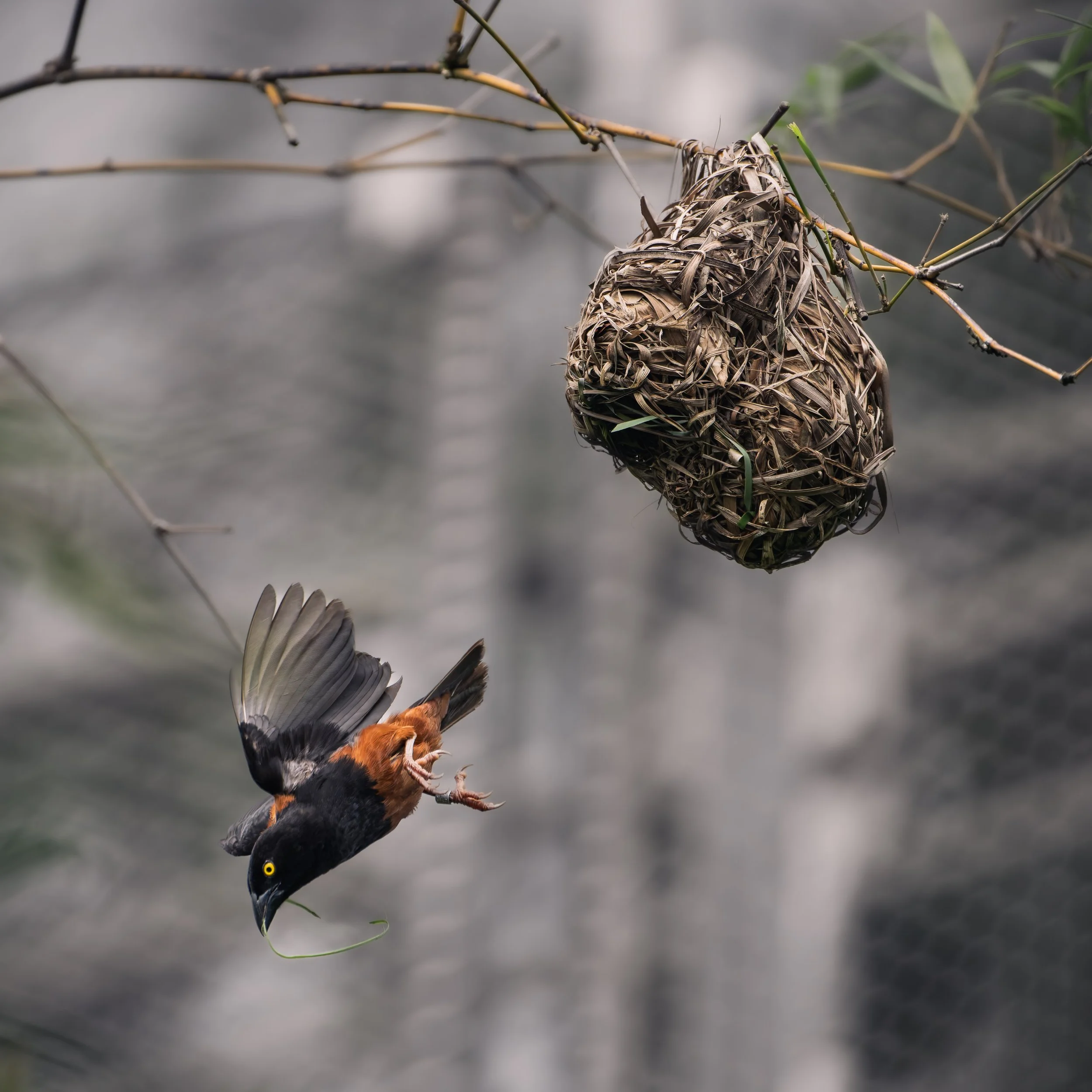 Small birds nest in Bird Paradise Singapore, showcasing unique nest weaving techniques.